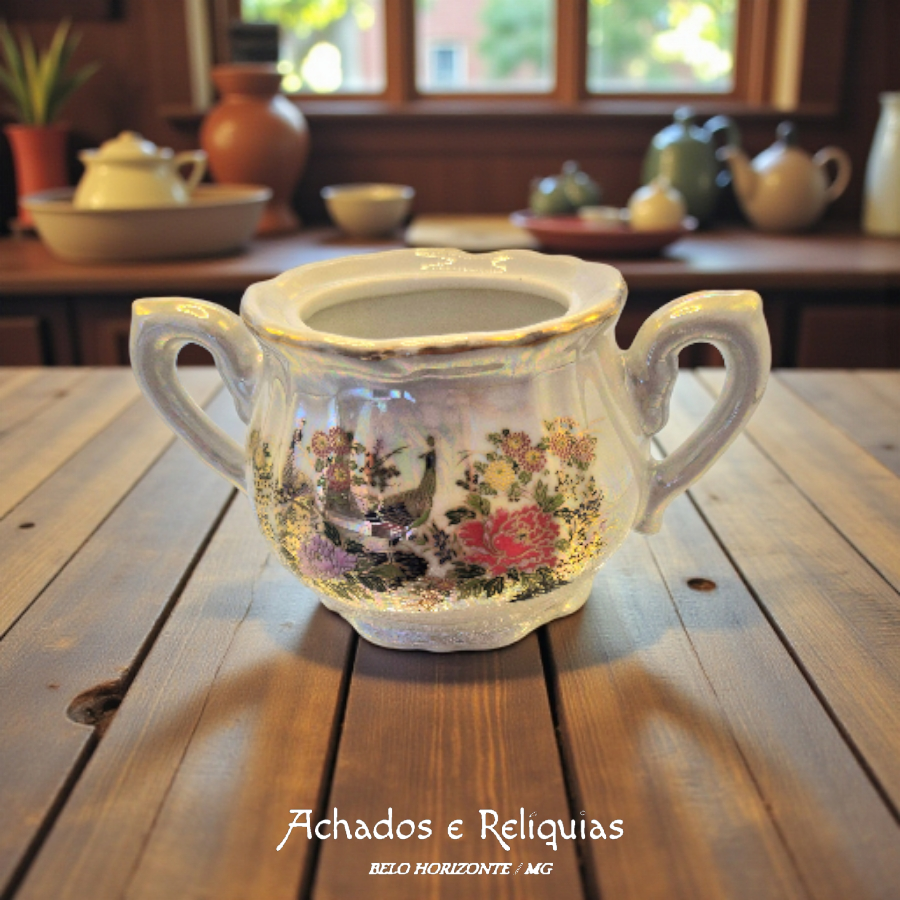 Açucareiro Japonês Perolado com Motivo Floral e Faisão