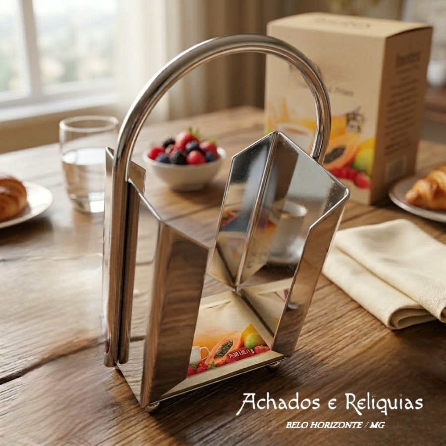 Pequeno e elegante acessório de mesa, este porta sachês de adoçante cromado da marca brasileira Inotex – Ornamentos Finos foi concebido para organizar e apresentar envelopes de adoçante com praticidade e discrição. Sua presença funcional remete ao ritual cotidiano do café, transformando um detalhe simples em gesto de cuidado e hospitalidade à mesa.
